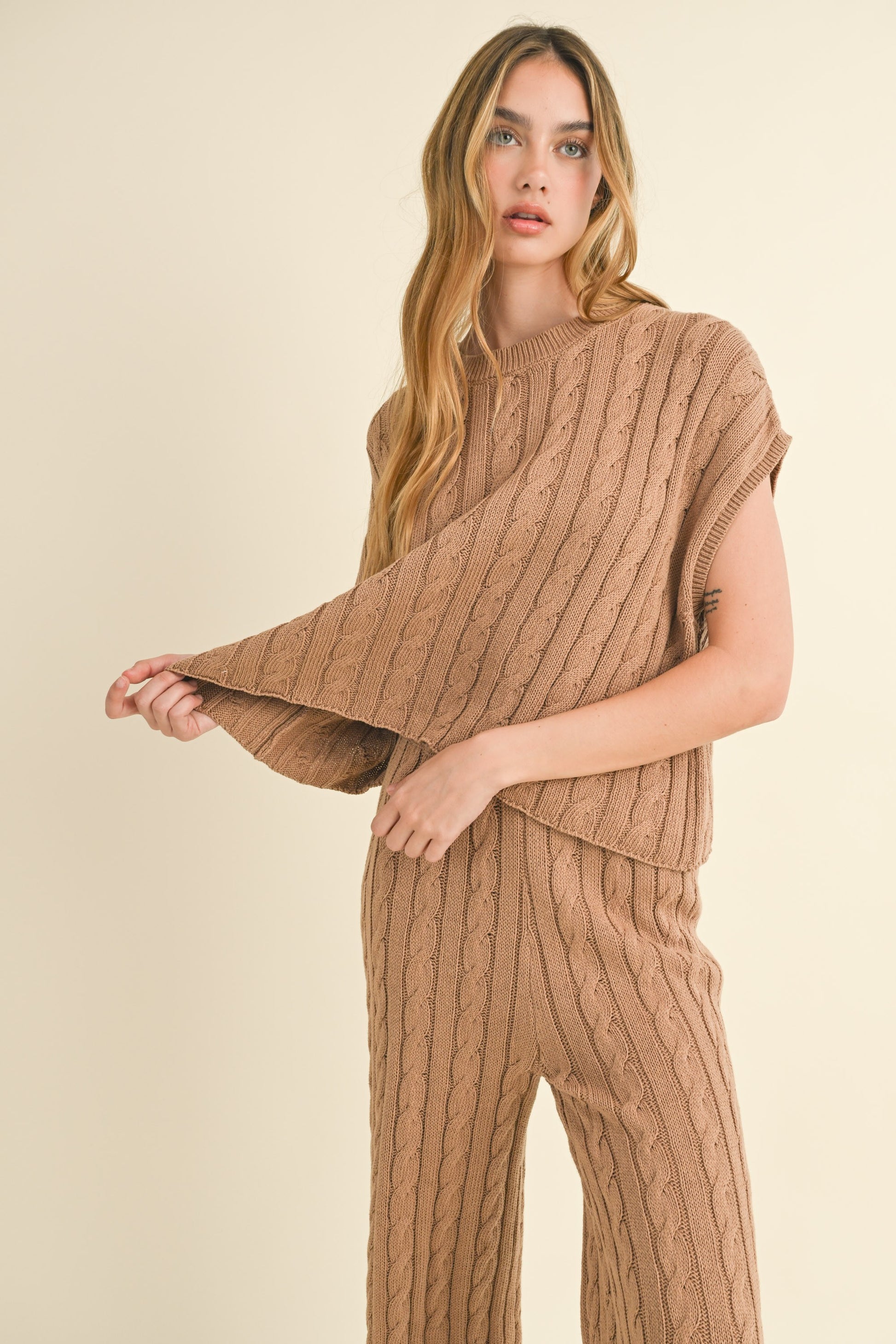 The Mabel Top is a lightweight cable-knit dream. It is soft, drapey, and effortlessly flattering. With relaxed cap sleeves and a cozy textured knit, it’s the perfect everyday piece to dress up or lounge in. Pair it with the matching Mabel Knit Pants for a comfy-chic set.
